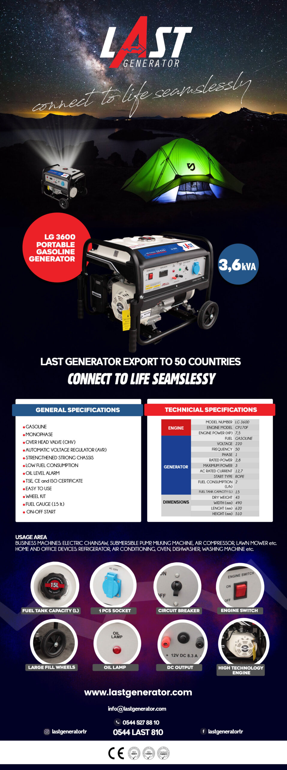 LG 3600 GASOLINE GENERATOR Usage Area Business Machines: Electric Chainsaw, Submersible Pump, Milking Machıne, Air Compressor, Lawn Mower etc. Home and office devices: Refrigerator, Air Conditioning, Oven, Dishwasher, Washing Machine. Etc. Description Description Gasoline Last Generator Portable Generator Related products Diesel GeneratorsLPS SeriesLPS 250 Diesel Generator Read more Diesel GeneratorsLPS SeriesLPS 275 Diesel Generator Read more Diesel GeneratorsLPS SeriesLPS 300 Diesel Generator Read more